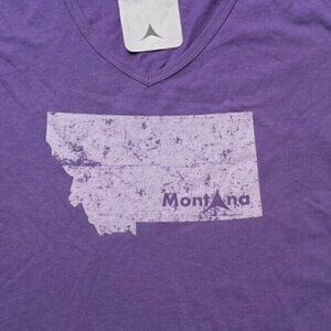 NWT Montana State Graphic Short Sleeve Purple T Women’s Large V-Neck Aspinwall