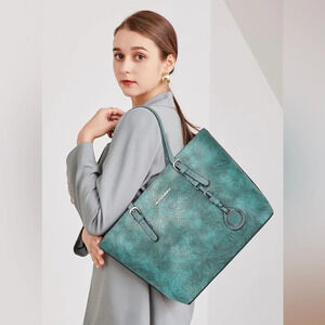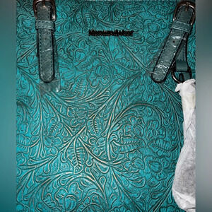 Montana West tote bag features a vintage embossed pattern, enriching its visual appeal.