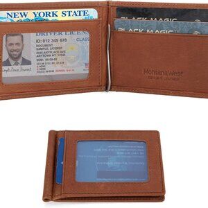 NWT Montana West Men’s Leather RFID Bifold Wallet w/ Money Clip, Brown,4.3”x3.1"