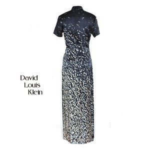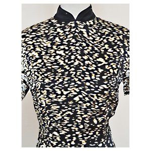 Midi length dress with a print on the highest quality, softest silk. Women's Size Small. Impeccably tailored by Ms. Envy Corporation, Hong Kong. Look divine for any special occasion in this dress, 100% silk, soft Mandarin collar, zipper down the back