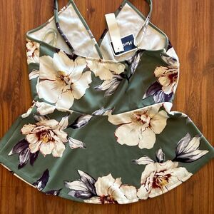 NWT Monteau Marshalls green floral spaghetti strap top blouse with peplum size X