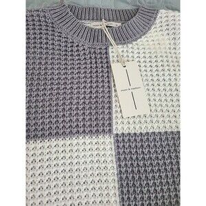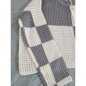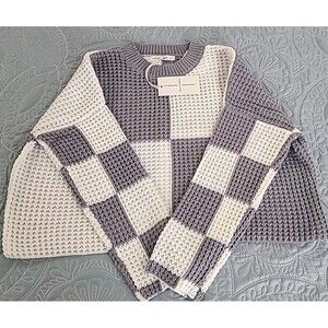 NWT Moon & Madison cropped Oversized Crochet Sweater grey white colorblock Sz S