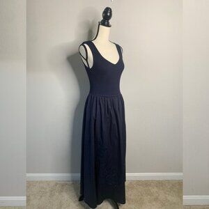NWT Moon River Blue Sleeveless Mixed Media Maxi Dress