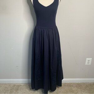 NWT Moon River Navy Blue Sleeveless Mixed Media Midi Dress