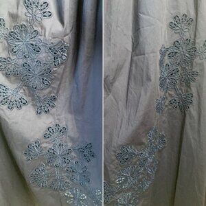 The dress features a mixed-media construction, combining a ribbed sweater-knit bodice with a contrasting cotton skirt. This design creates a flattering silhouette and adds visual interest. The skirt is adorned with eyelet details, enhancing its feminine appeal. he dress is sleeveless with a flattering V-neckline, allowing for easy layering with jackets or cardigans, or wearing alone for a breezy, elegant look.