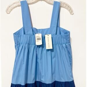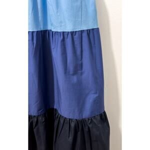 Step out in style with this stunning colorblock dress from Moon River. Featuring a tiered design, this dress combines shades of light blue, navy, and dark blue for a chic and modern look. The dress has wide shoulder straps and an elasticized back for a comfortable fit. Perfect for casual outings or summer events, this dress offers both style and ease. Add this versatile piece to your wardrobe for a fresh and fashionable statement.