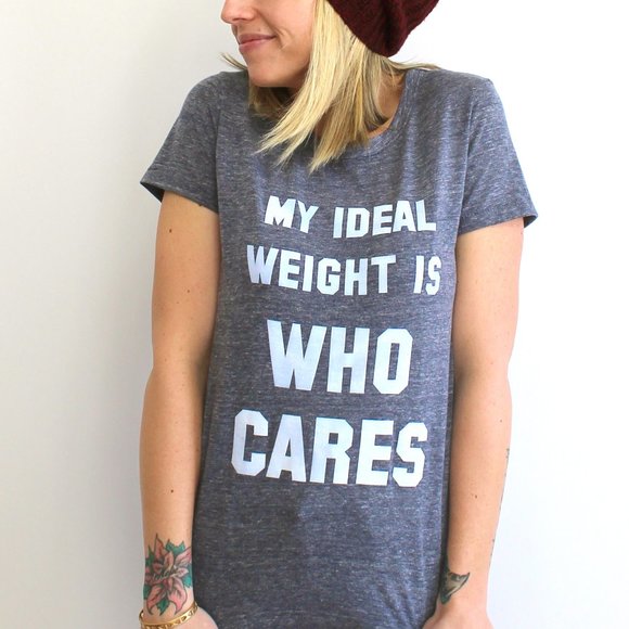 My Ideal Weight Is Who Cares women's crew neck graphic tee, available in various sizes NWT!