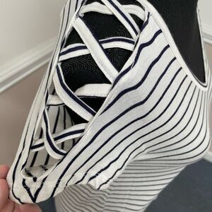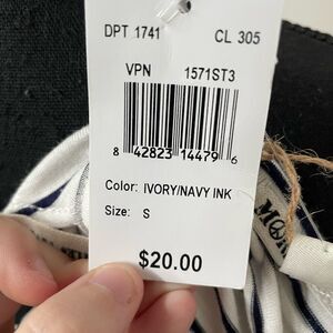 NWT Moral Fiber Ivory and Navy Stripe Blouse