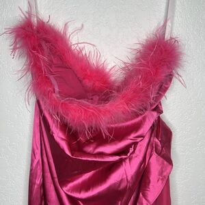 NWT More To Come CIERRA STRAPLESS WRAP DRESS IN PINK Feathers Large Revolve