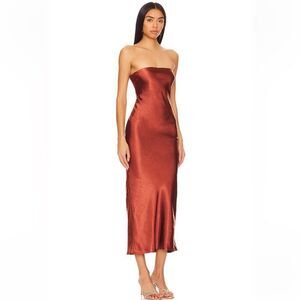 NWT More To Come Emma Strapless Maxi Dress Chocolate satin strapless Revolve M