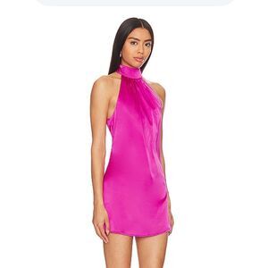 NWT More To Come Rita Mini Dress in Hot Pink satin baby doll A line Revolve S