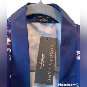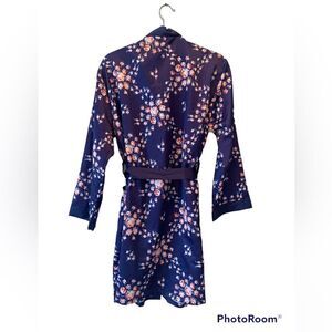 NWT Morgan Lane Fab Fit Fun Silky Feel Belted Navy Floral Kimono Robe Size S/M