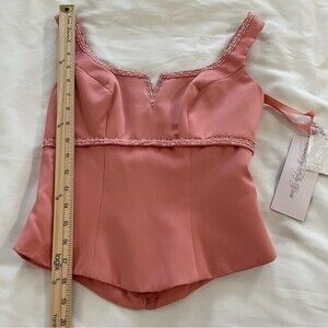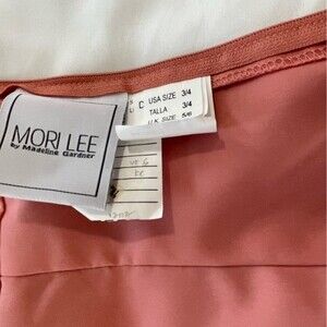 This is a melon color, maybe a soft burnt orange. The top has bead trim accents front and back. It completely zips apart and doesn’t fit the mannequin but wanted to show it.