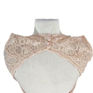 Morilee by Madeline Gardner light blush pink party dress. Fitted corset style bodice with sweetheart neckline and beautiful lace detail that covers the shoulders, leaving an alluring open back. The dress flares into an a-line tulle skirt. Back zipper, upper portion has slide clasps at the top. No satin belt as shown on tag photo. New with tags, no apparent flaws.