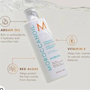 Moroccanoil Hydrating Conditioner: gently detangles hair, leaving it soft shiny and more manageable. Infused with replenishing nutrients including antioxidant-rich argan oil, Vitamins A and E and red algae for optimal hydration and conditioning. Gentle enough for daily use and for normal and color-treated hair.