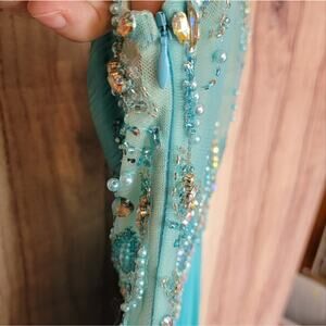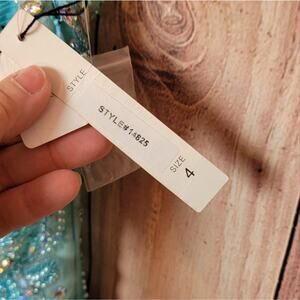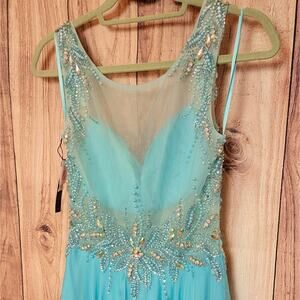 NWT Morrell Maxie Aqua Blue Sheer Back Gown, Style # 14825, Sz 4