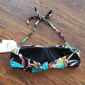 NWT Moschino Black Floral Birds of Paradise Feminine Girly Edgy Bandeau Halter Tie Bikini Top Size Small