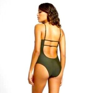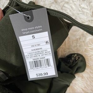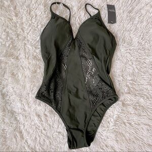 NWT Mossimo Olive Green One Piece Swimsuit Size Small Lace Accents Padded