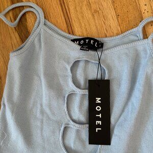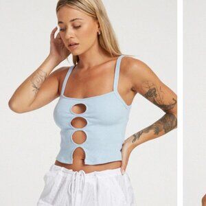 NWT Yusa Crop Top in Rib Powder Blue B2