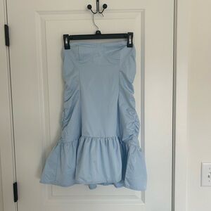 Chic strapless dress in light blue. Flattering fit with a ruffled hem. Perfect for stylish outings.