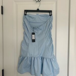 NWT Motel Rocks Light Blue Corset Detail Strapless Mini Dress Medium