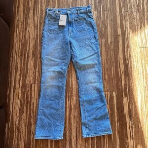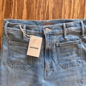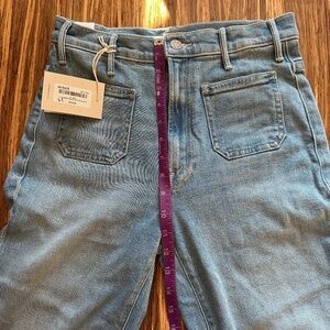 NWT Mother The Hustler Patch Pocket High-Rise Flare Jeans in Tune In Tune Out 27