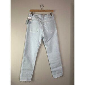 NWT Mother The Scrapper Cuff Ankle Fray Zip Denim Jeans Bottom Baby Blue Size 28