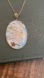 18in chain length. Pendant itself measures 1in width and 1.5in length. The necklace together clasped measures 10.5in length.