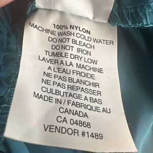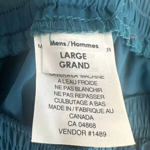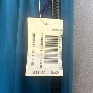 NWT Mountain Equipment Co-Op Nylon Spindrift Windbreaker Jogger Pants Mens Size Large VTG Full Zip Sides, Pull-on Elastic Waist Pants Teal Blue Made in Canada Machine Washable New With Tags, Vintage, New Old Stock. Original Retail (vintage) $39