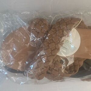 NWT, Mtzyoa Women Flat Sandals Braided Leather Crossover Nude