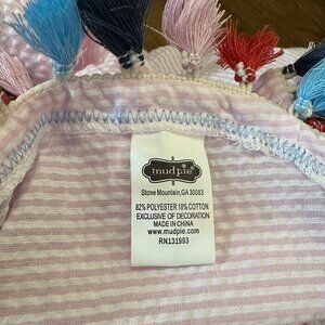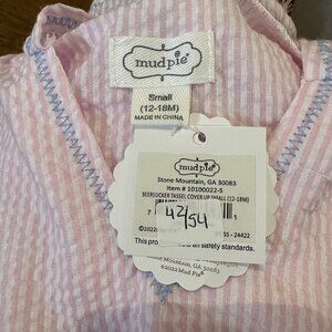 Brand new with tags Mud Pie seersucker poncho coverup with hoodie and tassel trim Size small 12-18 mos