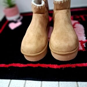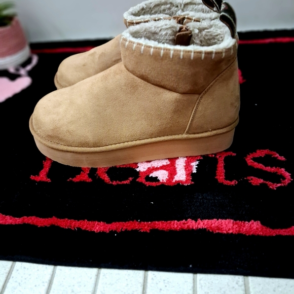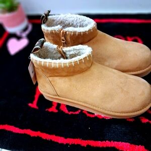 NWT Muk Luk Tan Suede Ankle Boots with Sherpa Lining Size 9