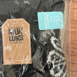 NWT Muk Luks Reversible Scarf, Beanie, and Touchscreen Gloves Set.