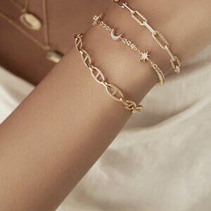 NWT Multi Link Anchor 14K Gold Rhodium Plated Vermeil Chain Bracelet