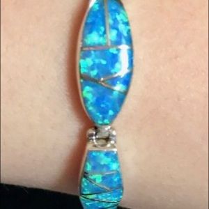 NWT Handcrafted in the USA. Sterling silver inlaid with the finest quality Gilson Lab Created Opal. This multiple shaped bracelet is absolutely stunning. It is a total of 7 1/2 inches in length with a 3/4 inch extension that varifies length anywhere from 6 3/4 to 7 1/2 inches. ALL OFFERS WELCOME!I❤️ to make someone’s day. As a Jeweler,I have access to fine jewelry @cost,... lower than imaginable.Like to be sure it goes for the love of the piece(s) of jewelry.