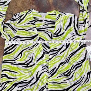 NWT Multiples Going Green Sheer Open Front Zebra Cardigan Large. This top is new with tags and is in excellent condition. Measurements in photos. Comes from a smoke free home.
