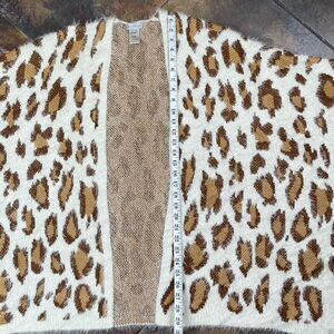 NWT Multiples Natural Attraction Leopard Open Front Fuzzy Poncho OX/1X. This poncho is new with tags. Measurements in photos. Comes from a smoke free home.