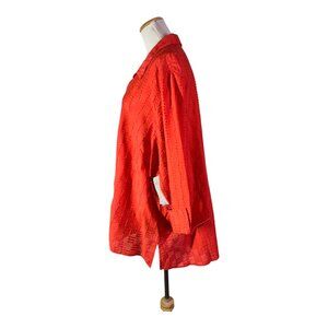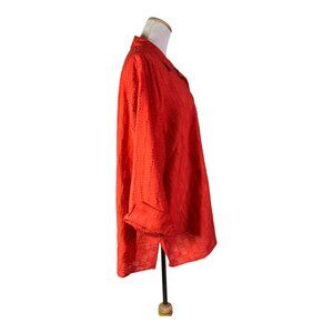 NWT Multiples Plus Size 2X Button-Front Tunic Shirt 3/4 Sleeves Textured Orange