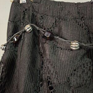 NWT Multiples Women's Small Gothic Glam Witchy Whimsigoth Black Lace Skirt Fringe Hem Beaded Belt