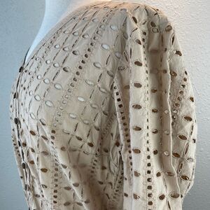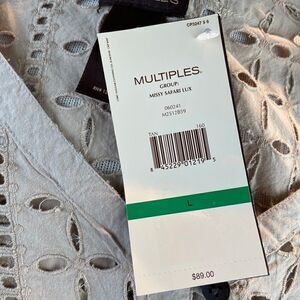 Super stylish and fun button down top by Multiples featuring the “Missy Safari Liz” design and beaded belt. It measures 22 inches armpit to armpit and is 29 inches in length.