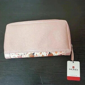 NWT Mundi Zip Around Pink Metallic Floral Wallet