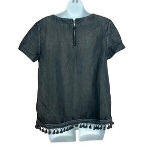 NWT Mur Mur Blackish Gray Grey Chambray Top With Tassels Small Boho