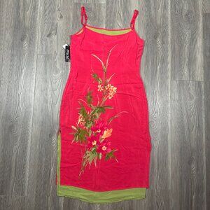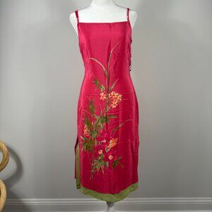 Ships fast from North Carolina! New with tags Muse silk midi dress featuring a bold pink floral design with green contrast lining. Adjustable straps and a flattering midi silhouette make this a standout for weddings, spring parties, or vacation evenings.