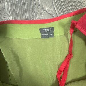 NWT Muse Pink Silk Floral Midi Dress with Green Contrast Size 8