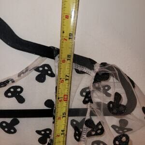 NWT Mushroom Glitter Mesh Womens Top Puff Sleeve Hot Topic Size M Sheer Groovy