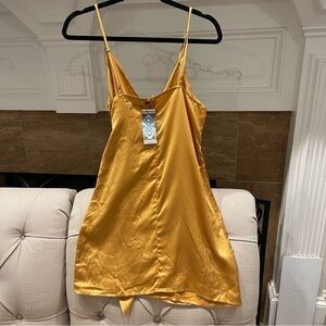 NWT Mustard Mini Spaghetti Strap Wrap Satin Dress Sz 8