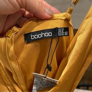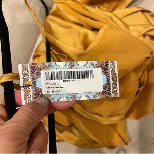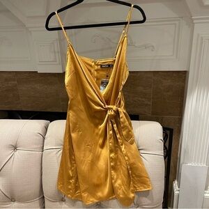 NWT Mustard Mini Spaghetti Strap Wrap Satin Dress Sz 8 Great used condition