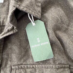 New with tags! Soft brushed 100% cotton flannel shirt in dark olive heather by Mutual Weave. Features a relaxed fit, double chest pockets, and button cuffs — perfect layered over a tee or worn alone for fall and winter. Classic, rugged, and versatile for casual or outdoorsy looks. Excellent condition. Smoke-free home.