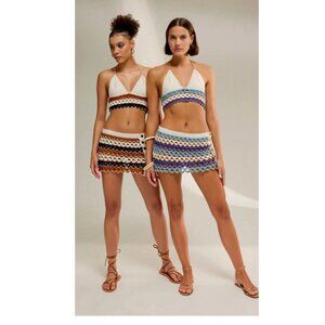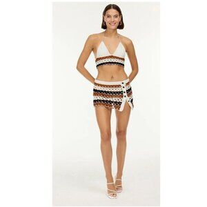 NWT My Beachy Side Crochet Halter Top Bikini Skirt Set White Brown Black Medium