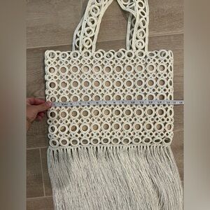 NWT My Beachy Side LARGE Crochet Embroidered Fringe shoulder bag Purse in Ivory